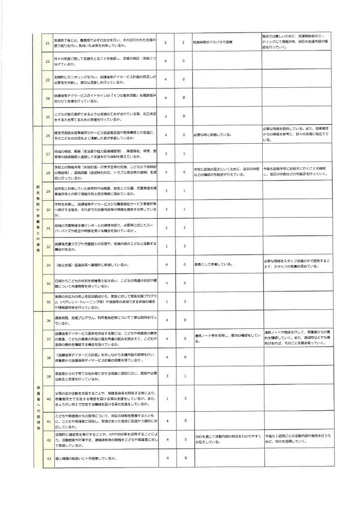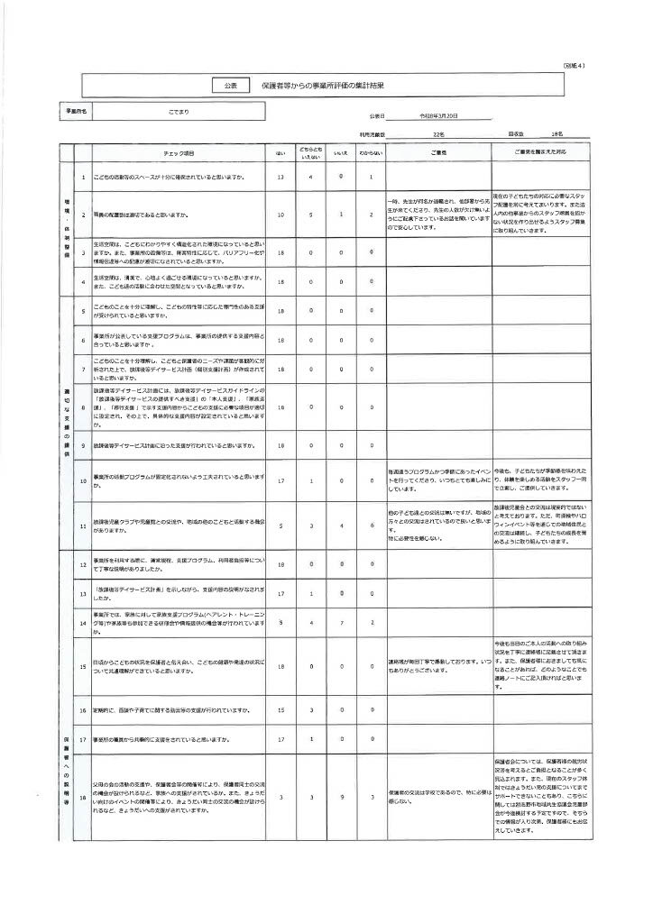お知らせ 放課後等デイサービス「こでまり」令和7年度 自己評価表 2026年3月19日 放課後等デイサービス「こでまり」の自己評価表について掲載させて頂きます。 ご協力頂きました保護者の皆様には深く感謝申し上げます。