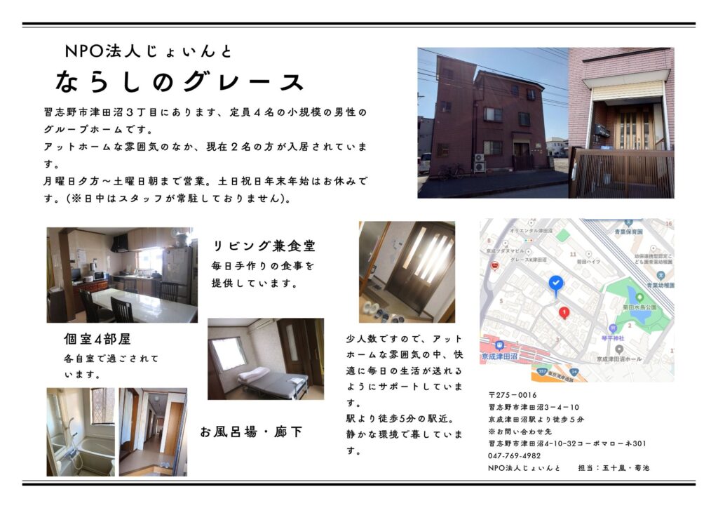 なお、障がい福祉のしおり、事業所ハンドブック/習志野市ホームページにも当グループホームについての紹介がございますので、ご覧ください。